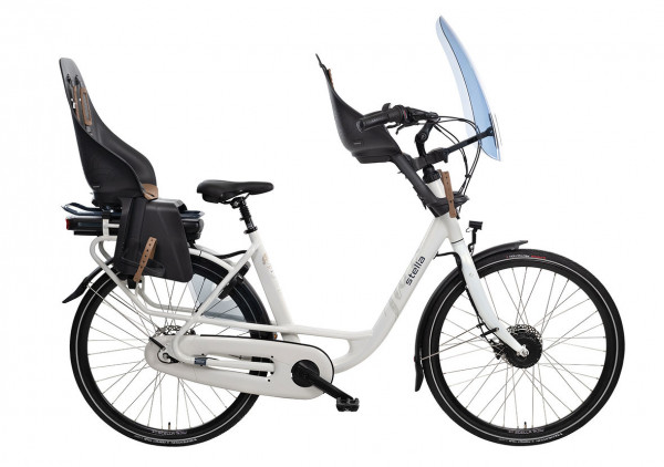 Met de krachtige en fluisterstille Stella Eleon voorwielmotor hoef je op deze elektrische mamafiets zelf niet zoveel kracht te zetten. Wel zo fijn wanneer je moet trappen voor drie!